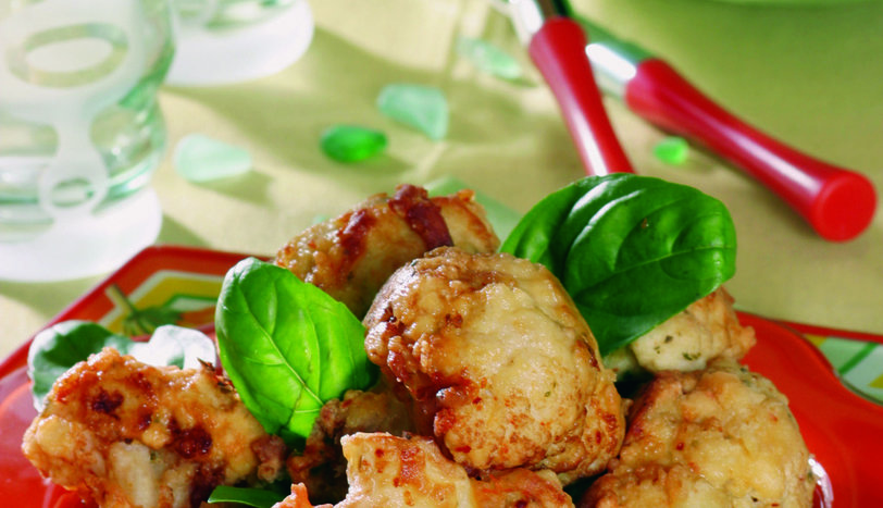 Karnabaharı çiçeklerine ayırıp bol suda 20 dakika haşladıktan sonra süzün. Bir kasede yumurtaları çırpın. İçine pulbiber, kekik, rendelenmiş kaşar peyniri ve tuz koyup karıştırın. Unu ayrı bir tabağa boşaltın. Sıvıyağı kızartma tenceresine alıp kızdırın. Haşlanmış karnabaharları önce yumurtalı karışıma, sonra una bulayıp kızgın yağda kızartın. Kızaran karnabaharları servis tabağına alın. Fesleğenleri incecik kıyın. Süzme yoğurt ile karıştırıp üzerine gezdirin. Üzerini fesleğen yaprakları ile süsleyip servis yapın.