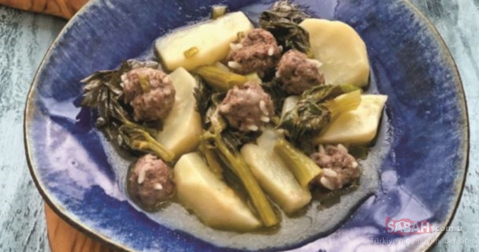 Zeytinyağını bir tencereye alıp, yemeklik doğranmış taze soğan ve elma dilimi kerevizi ekleyip karıştırın.Sebzelerin rengi dönmeye başlayınca köfteleri ilave edip, üzerini örtecek kadar sıcak su ekleyin ve 10 dakika kadar pişirin.