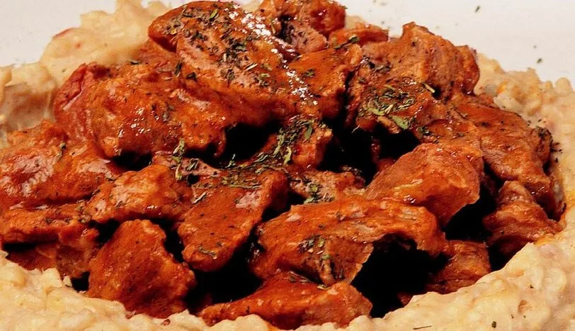 BUĞDAYLARI sıcak suda 10 dakika kadar kaynatın. Bir gece bekletip, ertesi gün ateşe alın ve eti de ekleyip iyice pişirin. Bu arada ayrı bir yerde tereyağı ve 2 adet yemeklik doğranmış soğanı kavurun. Salça ve tuz ilave edin. Etli karışımı ekleyip biraz daha kavurun. Üzerine yeterince ılık su ilave ederek (üzerini çok az aşacak kadar), çok az su kalana kadar pişirin. İyice pişip suyunu yeterince çekince, ateşten alın. Çırpma teli ile, macun kıvamı alana dek çırpın (hafif lapa kıvamında olacak). Kalan soğanları çok ince doğrayıp, kırmızıbiberle tereyağında kavurun. Keşkeğin üzerine gezdirin. İyice karıştırıp, et sote ile servis yapın.