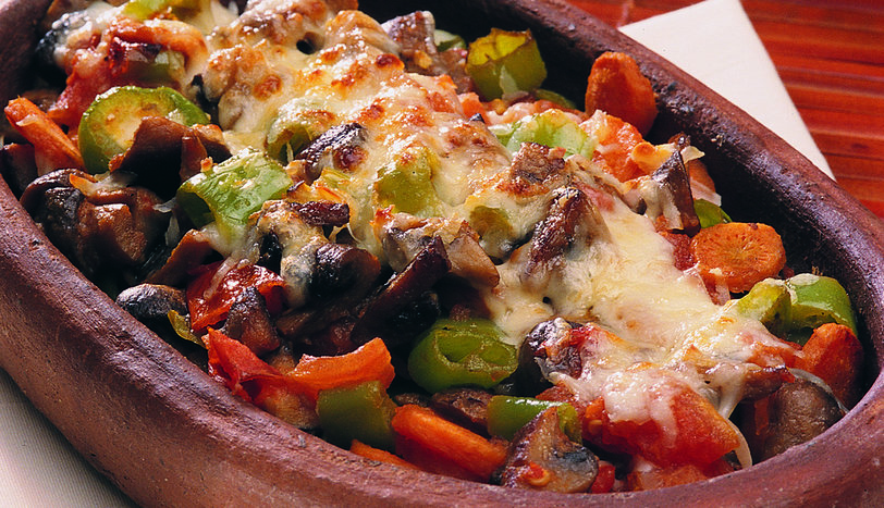 KÜP doğranmış soğanı sıvıyağda pembeleştirelim. 1 Mantarları 4'e keselim. 2 Soğanlara ilave edip, mantarların suyu çekilene dek kavurmaya devam edelim. 3 Domatesi doğrayıp ekleyelim. Ardından dilimlenmiş havuçları ve doğranmış sivri biberleri mantarlara ilave edelim. 8-10 dakika daha kavuralım. Tuz ve karabiberi katıp, tavayı ocaktan alalım. Mantarlı harcı bir fırın kabına boşaltalım. 4 Üzerine rendelenmiş kaşar peynirini serpelim. Isıtılmış 200 derece fırında, kaşarlar eriyene dek pişirelim. Servis yapalım.