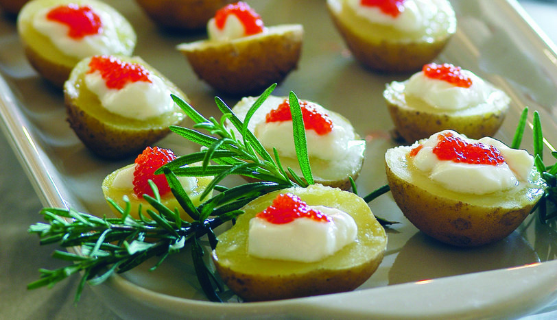 Kırmızı havyarla Taze Patatesler