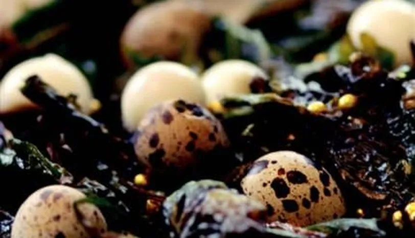 Ispanak yapraklarını kızgın sıvıyağda kızartıp cips haline getirin. Yumurtaları haşlayın. Ispanakları servis tabağına alın. Üzerine yumurtaları yerleştirin. Şekerleri serpiştirip servis yapın.AŞÇININ NOTUGold drop şeker: Süslemede kullanılan bu şekerleri, pasta malzemesi satan dükkanlardan temin edebilirsiniz.