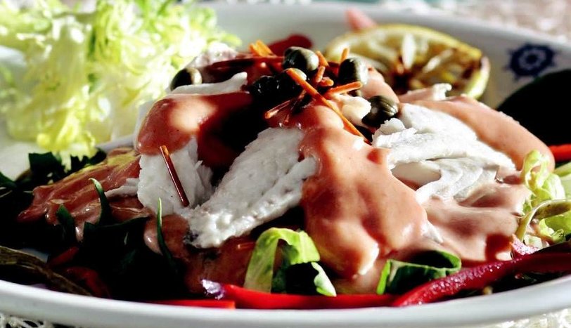 Yumuşacık balık ve lezzetli kokteyl sosuyla akşam yemeklerinize lezzet katacak kokteyl soslu çipura