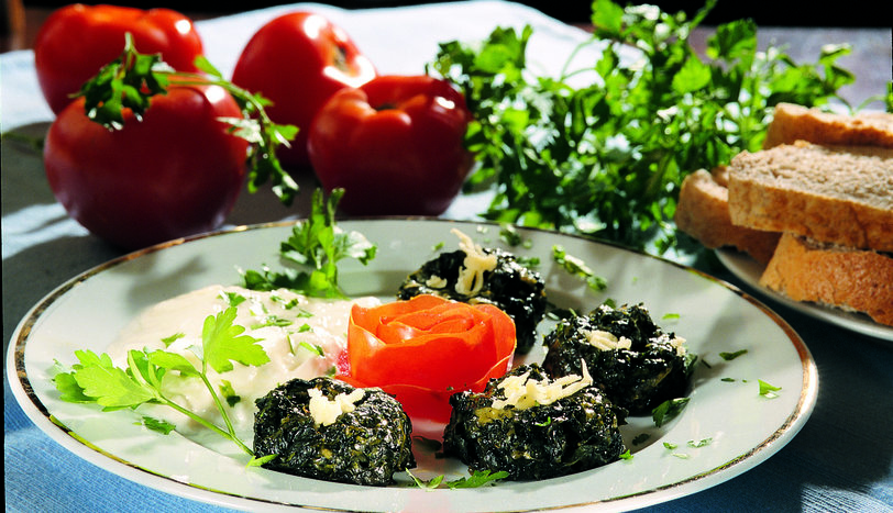 ISPANAK yapraklarını dallarından ayırın. Kalan ıspanak yapraklarını ince ince kıyın ve iyice yıkayıp suyunu süzün. Derin bir kaba, kıyılmış yaprakları, rendelenmiş soğanı, kabartma tozunu, naneyi ve yumurtayı aktarın. Malzemeyi harmanlayın. Son olarak unu ve tuzu katıp iyice yoğurarak püre haline getirin. Ispanak harcından ceviz büyüklüğünde parçalar koparıp elinizle yuvarlayın. Ortalarına, fazla derin olmayacak şekilde parmakla bastırın. Fırın tepsisini yağlayıp, yuvarlak haline getirdiğiniz ıspanak toplarını tepsiye yerleştirin. Önceden ısıtılmış 180 derece fırında kızarana dek pişirin. Sonrasında tepsiyi fırından çıkarıp ocağa koyun. Sıvıyağ ile birlikte kaynatılmış suyu tepsideki "Komhpiste"nin üzerine gezdirerek dökün. Suyu çekene dek pişirin. Servis yapın.