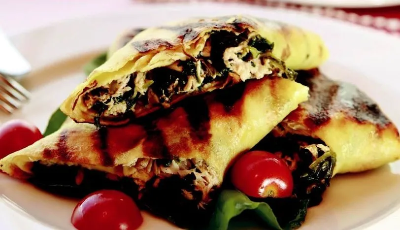 Öncelikle iç harç için ayıklanmış ve yıkanmış palamudu haşlayın. Derisini soyup, kıydıktan sonra bir kaba alın. Ispanağı haşlayın ve suyunu süzün. Elinizle iyice sıktıktan sonra ince kıyıp, balığa katın. Kaşar peyniri, tuz ve karabiber ekledikten sonra tüm malzemeyi karıştırın. Diğer taraftan krep için derin bir kapta süt ve yumurtayı çırpın. Daha sonra un ve tuz ekleyip akıcı bir kıvam alıncaya kadar çırpmaya devam edin. Yapışmaz yüzeyli bir tavaya krep hamurundan bir kepçe dökün ve tavayı sağa sola sallayarak yayılmasını sağlayın. Krebi önlü arkalı pişirin. Krep hamuru bitene kadar işleme devam edin. Hazırladığınız palamutlu harcı kreplerin içine pay edin. Daha sonra krepleri 4 parmak genişliğinde sarıp, rulo haline getirin. Dilimleyip sıcak olarak servis yapın.