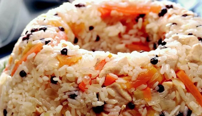 Tavuk etini 1 çorba kaşığı tereyağında kavurup kenara alın. Kuru kayısıları dörde bölün. Kuş üzümlerini temizleyin. Daha sonra ayrı kaplara alıp yarım saat sıcak suda bekletin. Soğanları yemeklik doğrayıp, kalan tereyağında renkleri dönene kadar kavurun. Üzerine jülyen doğranmış havucu ekleyin. Bir- iki dakika sonra pirinci ilave edin. Pirinç beyazlaşana kadar kavuru, üzerini geçecek kadar sıcak tavuk suyu ekleyin. Tuz, karabiber ve yenibaharı katın. Orta ateşte yarı yarıya suyunu çekene kadar pişirin. Kuru kayısı ve kuş üzümünü süzüp tencereye ekleyin. Kısık ateşte pilav tamamen suyunu çekene kadar pişirin. Ocaktan alıp, tencerenin üzerine kağıt havlu koyun ve kapağını kapatın. 10 dakika demlendirip servis yapın.