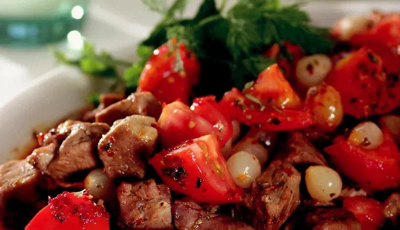 Bir tencerede tereyağını eritip üzerine etleri ekleyin. Arada bir karıştırarak, suyunu salıp yeniden çekinceye kadar kavurun. Sonra üzerine arpacık soğanları ve suyu ekleyip 10 dakika birlikte sote edin. Üzerine ince kıyılmış sivri biberi, tuz ve karabiberi ekleyin. Etler yumuşayana kadar pişirip, 8'e böldüğünüz domates, nar ekşisi ve limon suyunu ilave edin. 10 dakika daha pişirip ocaktan alın. Kekik serperek servis yapın.