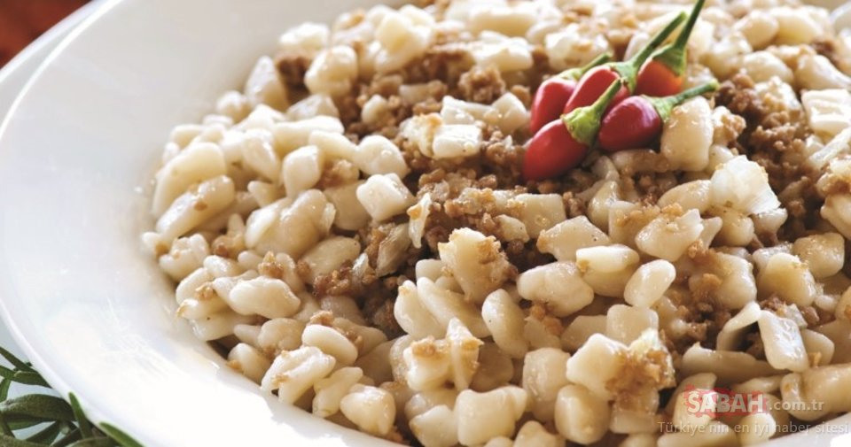 Hamur için derin bir kaba unu alıp ortasına yumurtaları kırın. Tuz serpin. Sert bir hamur elde edene kadar su ekleyerek yoğurun. Hamuru ceviz iriliğinde bezelere ayırıp un serperek tezgahta açın. Oklavaya dolayıp ortadan ikiye kesin. Daha sonra erişte biçiminde, sonra da çok minik kareler oluşacak biçimde hamuru tekrar kesin. Hamurları kurumaya bırakın. Sıcak tuzlu suda haşlayın. Süzgeçten geçirip soğuk su ile yıkayın.