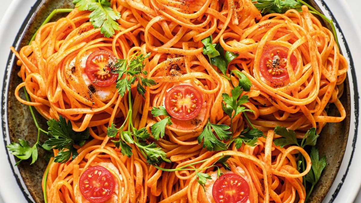 Pratik tarifiyle lutenitsa soslu burratalı yaz makarnası. Sofralarınıza renk ve ferahlık katacak lutenitsa soslu burratalı yaz makarnası tarifi.