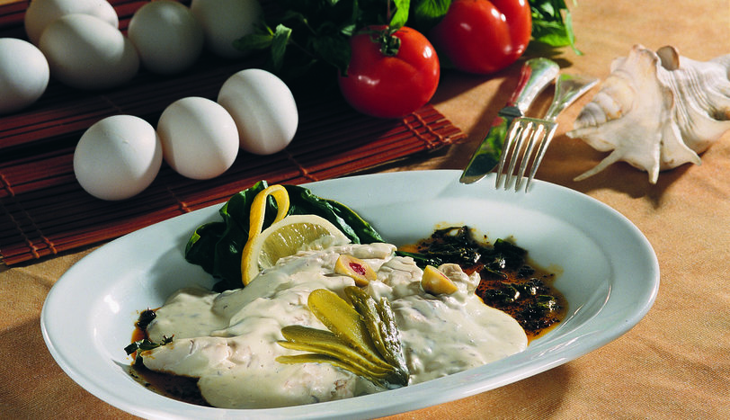 Kefalin içini ve pullarını temizleyin. Başını ve kuyruğunu kesip ortadan ikiye bölün. Soğanı soyup dörde bölün. Bir tencereye soğan, defne yaprağı ve havucu aktarın. Üzerine balıkları koyun. Ardından balıkları örtecek kadar su doldurup kaynatın. Tuzunu ayarlayın. Kaynattıktan yaklaşık 10 dakika sonra balıkları sudan alın. Derisini ve kılçıklarını ayıklayın. Beyaz etlerini çok küçük olmayan parçalara bölüp bir kaba alın. Yumurta sarısını iyice çırpın. Üzerine sıvı yağı damla damla ilave ederken çırpmaya devam edin. Aynı şekilde limonun suyunu da ilave edin. Unu da yavaş yavaş ekleyerek aynı yönde karıştırmaya devam edin. Tuzu ekleyip tekrar karıştırın. Hazırlamış olduğunuz mayonezi balıkların üstüne döküp harmanlayın. Servis tabağına alıp, üzerine arzu ettiğiniz miktarda zeytinyağı gezdirin. Kornişon turşuyla süsleyip servis yapın.
