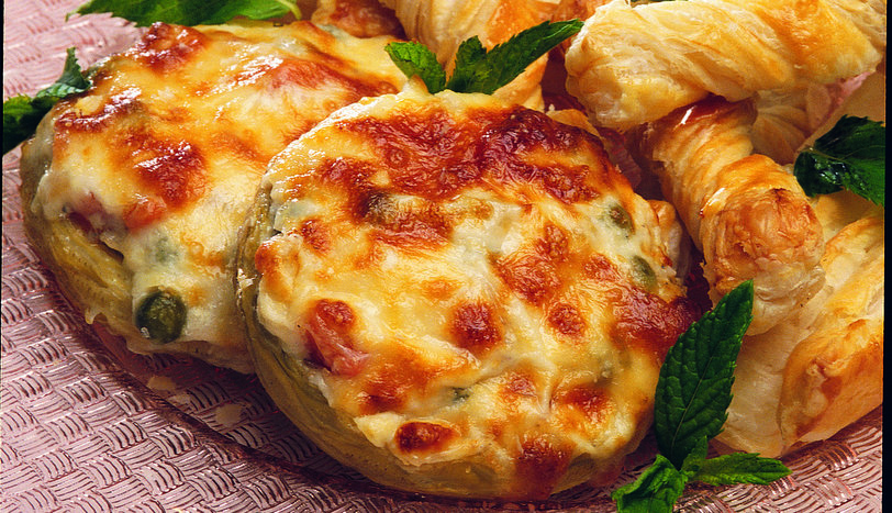 Enginarları yumuşayana kadar haşlayın. Havuç ve patatesleri minik minik doğrayıp haşlayın ve süzün. Bezelyeleri de ekleyip karıştırın. Soğanları da küp küp doğrayıp tereyağında havuç, patates ve bezelyelerle birlikte kavurun. Üzerine krema, tuz ve karabiber ekleyip, 4-5 dakika pişirin. Garnitürü enginarların ortasına paylaştırın. Diğer tarafta beşamel sos için tereyağında unu kavurun. Sütü ekleyip karıştırarak pişirin. Beşamel sosu enginarların üzerine yayın. En üste rendelenmiş kaşar peynirini serpin. Önceden ısıtılmış 180 derece fırında pişirin. Milföy çubukları için hamurları şeritler halinde uzun uzun kesin. Üzerlerine yumurtanın beyazını sürün. İki adet hamuru, yumurtalı kısımları üst üste gelecek şekilde yerleştirin. Bir ucunu sabit tutarak burun. Çubukların üzerine yumurta sarısını sürüp, 200 derece fırında kızarana kadar pişirin. Milföy çubuklarını enginarla birlikte servis yapın.