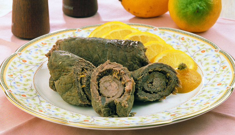 BİFTEKLERİ iyice dövün. Muskatı rendenin ince tarafı ile rendeleyin. Aynı kaba limonun kabuğunu da rendeleyin. Muskat ve limon kabuğu rendelerini bifteklerin aralarına pay edin. Biftekleri rulo şeklinde sarın. Rulo biftekleri alüminyum folyonun içine koyup, folyonun kenarlarını bükerek kapatın. Kapaklı bir tencerede suyu kaynatın. Folyoya sardığınız etleri tencereye atın ve yarım saat kadar pişirin. Folyoları çıkarıp, etlerin üzerine limonun suyunu sıkın. Tereyağını bir tavada eritin. Biftekleri tavaya alıp, yarım dakika kızartın. Sıcak servis yapın.