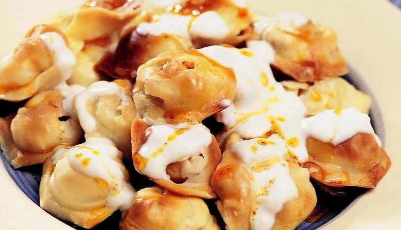Unun ortasını açıp yumurtayı kırın. Tuzunu ayarlayıp, yeteri kadar su ilave edip yoğurun. Ele yapışmayan yumuşak bir hamur elde edin. Hamuru 4 bezeye ayırın. Unlanmış bir zemin üzerinde bezeleri, hazır yufkadan biraz daha kalınca açın. Mantı kalıbının üzerine 1 yufkayı yerleştirin. Haşlanmış nohudu eşit aralıklarla yufkanın üzerine dizin. Diğer bir yufkayı nohutların üzerine serin. Elinizle yufkaların üzerine bastırarak hamurların kalıptan çıkmasını sağlayın. Mantı kalıbınız yoksa, 1 yufkayı temiz bir zemin üzerine serin ve üzerine eşit aralıklarla haşlanmış nohutları dizip, üzerine diğer yufkayı kapatın. Ruletle, nohutlar içte kalacak şekilde kareler kesin. Hemen pişirecekseniz, kaynamış tuzlu suda nohutlu hamur parçaları yumuşayana dek haşlayın. Eğer hemen pişirmeyecekseniz, hamur parçalarını fırın kabına dizin. Hafifçe esmerleşene dek fırında pişirin. Fırından alıp, dilediğiniz zaman haşlayarak kullanmak üzere serin ve kuru bir yerde saklayın. Taze pişirecekseniz hamurları haşladıktan sonra delikli kepçe ile suyunu süzerek çıkarın. Nohutlu piruhileri servis tabağına aktarıp üzerlerine sarmısaklı yoğurt gezdirip, servis yapın.