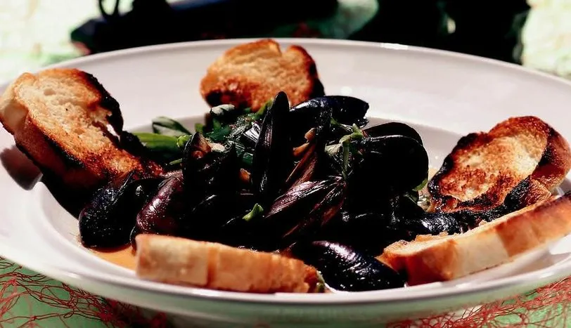 Kabuğu açılmamış midyeleri, kumlarının çıkması için suyun içinde 5-10 dakika bekletin. Daha sonra suyunu süzün ve yapışmaz yüzeyli bir tavaya aldığınız kızgın zeytinyağında kabukları açılana kadar çevirin. İnce kıyılmış sarımsağı ilave edin, karıştırın. Kremayı ilave edip, 1-2 dakika daha pişirin. En son doğranmış taze soğanın yeşil kısımları ile taze kişnişi ekleyip, şöyle bir çevirip servis tabağına alın. Kızarmış ekmek dilimleriyle sıcak servis yapın