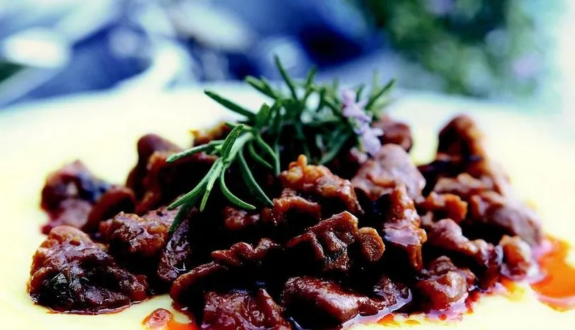 eti koyup, suyunu salıp çekene kadar pişirin. İnce doğranmış sivri biberi ilave edin. Biber kavrulunca salça, limon suyu ve unu ekleyip 1 dakika daha kavurun. Üzerine 1 su bardağı sıcak su ekleyin. Tuz ve karabiber ekleyip, et yumuşayana kadar pişirin. Diğer taraftan patatesleri kabukları ile birlikte tuzlu suda iyice haşlayın. Kabuklarını soyup çatalla ezin ve bir tencereye alın. Üzerine ılık süt, rendelenmiş muskat, kalan tereyağı, tuz ve karabiber ekleyin. Boza kıvamına gelince kaşar peyniri ilave edin ve eriyince ocaktan alın. Patates beğendiyi bir servis tabağına alın. Üzerine eti ekleyip servis yapın.
