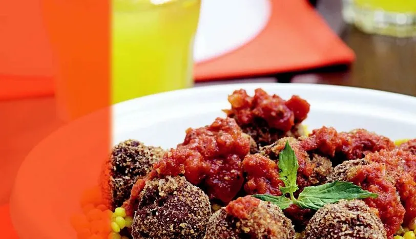 PATLICANLARI rendenin kalın tarafı ile rendeleyin. Kıyma, kıyılmış soğansarmısak, yumurta, kıyılmış maydanoz, tuz ve karabiberi karıştırın. Karışımdan ceviz büyüklüğünde parçalar koparın. Elinizde yuvarlak köfteler hazırlayıp, galeta ununa bulayın. Bol ve kızgın sıvıyağda kızartıp, fazla yağını süzdürün. Domates sos için soğan ve sarmısağı sıvıyağda kavurun. Renk değiştirince kalan malzemeyi ekleyip 30 dakika pişirin. Patlıcan köftelerini sosa ekleyip ocaktan alın. Kuskusla birlikte servis yapın.