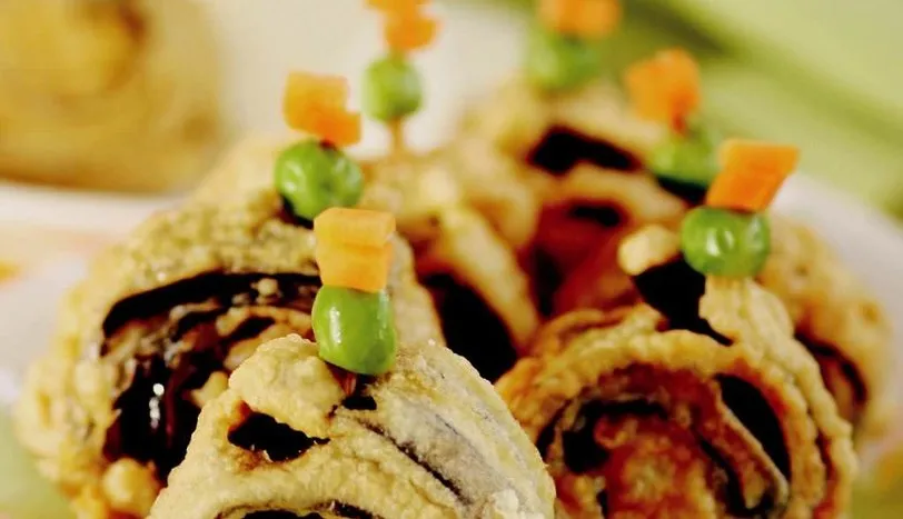 Servis önerisi: Patlıcan rulolarını sarmısaklı yoğurt ile servis yapabilirsiniz.