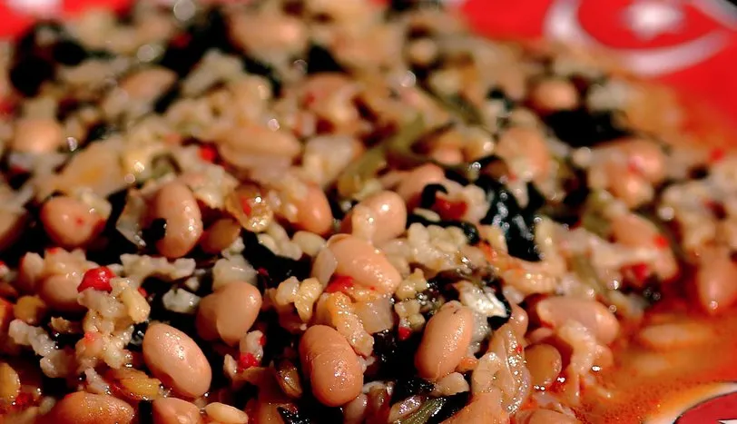 Soğanları küçük doğrayıp zeytinyağında soteleyin. Salçayı katın. Pirinç, mercimek ve bulguru ilave edin. Bunlar pişmemiş oldukları için, en altta bırakın. Ardından semizotu ve haşlanmış fasulyeleri de katıp, ocağın altını iyice kısın. Semizotu kendi suyunu bırakıp yemek helmelenmiş hale gelene kadar pişirin. Yine de suyunu kontrol etmenizde yarar olacaktır. Ateşi söndürdükten sonra, tuzla dövdüğünüz sarmısakları limon suyuna ilave edin ve bunu pişmiş olan aşınıza katıp iyice karıştırın. Sarmısaklar tuzlu olduğundan, yemeğe ayrıca tuz koymanız gerekmez. Bu yemek, yoğurt ilavesiyle daha da lezzetlenir.
