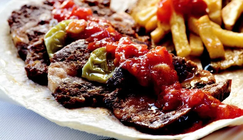 Öncelikle kebap için kıymayı derin bir kaba alın. İçine ruşeym, rendelenmiş soğan, domates ve biber salçası, kişniş, tuz, kimyon ile karabiber ilave edin. Tüm malzeme özleşene kadar iyice yoğurun ve 10 dakika dinlendirin. Streç film içine kontrfilenin yarısını, üzerine kıyma harcının yarısını ve onun da üzerine tavuk etinin yarısını yayın. Aynı işlemi bir kez daha tekrarlayın sonra rosto sarar gibi sarın ve iyice donması için derin dondurucuda bir gece bekletin. 2 Tüketeceğiniz zaman derin dondurucudan çıkarın ve yiyeceğiniz kadarını 1 cm kalınlığında dilimleyin. Yapışmaz yüzeyli bir tavada az yağ ile kızartın. 3 Garnitür için alacalı doğradığınız patlıcanı acısının çıkması için tuzlu suda 15 dakika beklettikten sonra süzün ve kurulayın. Diğer sebzeleri de istediğiniz şekilde doğrayın ve hepsini ayrı ayrı kızdırılmış sıvı yağda kızartın. Kağıt havlu üzerinde fazla yağını alın. 4 Domates sos için kabukları soyulmuş domatesi küp şeklinde doğrayın ve zeytinyağı ile birlikte bir tavaya koyun. İçine kıyılmış sarımsak, kesme şeker, tuz ve pul biber ekleyin. 1-2 dakika çevirdikten sonra ruşeymli kebap ve sebze garnitür ile birlikte sıcak olarak servis yapın.