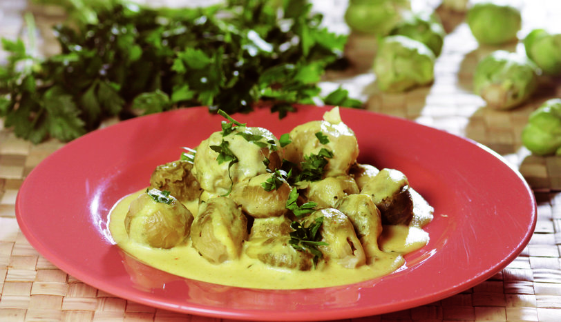 Yıkadığınız brüksellahanasını bir tutam tuz attığınız suda, 30 dakika haşlayın. Suyunu süzüp bir servis tabağına alın. Sos için, sıvıyağ mısır ununu koyup, kısık ateşte pembeleşene kadar kavurun. Unun topak olmaması için, önce sütü sonra suyu yavaş yavaş ilave ederek karıştırın. Kesmeşeker ve safranı ekleyerek karıştırmaya devam edin. En son rendelenmiş kaşar peynirini katarak, 1-2 dakika daha pişirin. Hazırladığınız beşamel sosu lahanaların üzerine gezdirip, kıyılmış maydanozla süsleyerek sıcak olarak servis yapın.