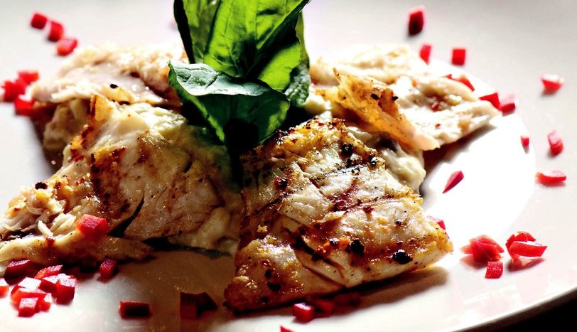 Taze levrek filetosu, kremsi ve hafif sakızlı beğendiyle mükemmel bir uyum sağlıyor.