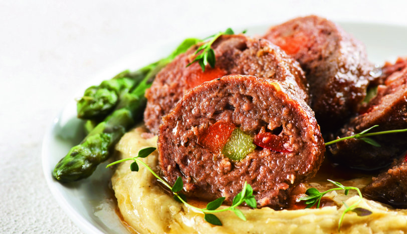 Köftenin ucundan başlayarak rulo şeklinde sıkıca sarın. Kalan köfteleri de aynı şekilde hazırlayıp fırın tepsisine yerleştirin. Önceden ısıtılmış 200 derece fırında 20 dakika pişirin. Favayı servis tabaklarına pay edin. Üzerlerine dilimlenmiş köfte yerleştirip servis yapın.