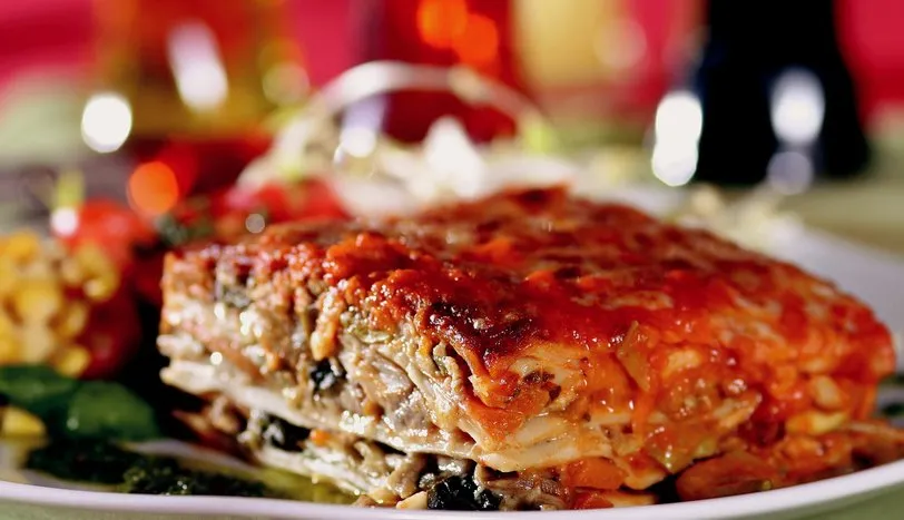LAZANYAYI pakette belirtilen süre kadar haşlayın, süzün ve bir kenara alın. Piyazlık doğranmış soğanı zeytinyağında kavurun. Jülyen doğranmış havucu ilave edip kısık ateşte kavurmaya devam edin. 5'er dakika ara ile jülyen doğranmış patlıcan ve kabağı ilave ederek sebzeleri kavurun. Sebzelerin pişmesine yakın kıyılmış mantar ve ıspanağı ilave edin. Tuz ve karabiber kattıktan sonra mantarlar hafif diri kalacak şekilde pişirip ocağın altını kapatın. Domates sos için ince kıyılmış soğan ve sarmısağı zeytinyağında kavurun. Kabukları soyulmuş ve küp doğranmış domatesi ilave edin. Domates yumuşayana kadar pişirip, tuz, karabiber ve fesleğini ekleyin. 2-3 dakika daha pişirdikten sonra blenderden geçirin. Beşamel sos için zeytinyağını kızdırıp kepekli unu katın ve rengi dönene kadar kavurun. Tahta bir kaşıkla sürekli karıştırarak light sütü azar azar ilave edin. Koyulaşınca ocaktan alıp tuz ve karabiber ekleyin. Orta büyüklükte bir fırın kabının dibini iyice yağlayıp lazanya ile kaplayın. Üzerine sıra ile sebze karışımı, beşamel sos ve domates sos yayın. Aynı işlemi 3 kat olacak şekilde tekrarlayın. En üste beşamel sos ve domates sos döktükten sonra rendelenmiş light kaşar peynirini serpin. Önceden ısıtılmış 200 derece fırında 30 dakika pişirin. Piştikten sonra dilimleyerek kiraz domates, mısır ve soya filizi ile birlikte sıcak olarak servis yapın.