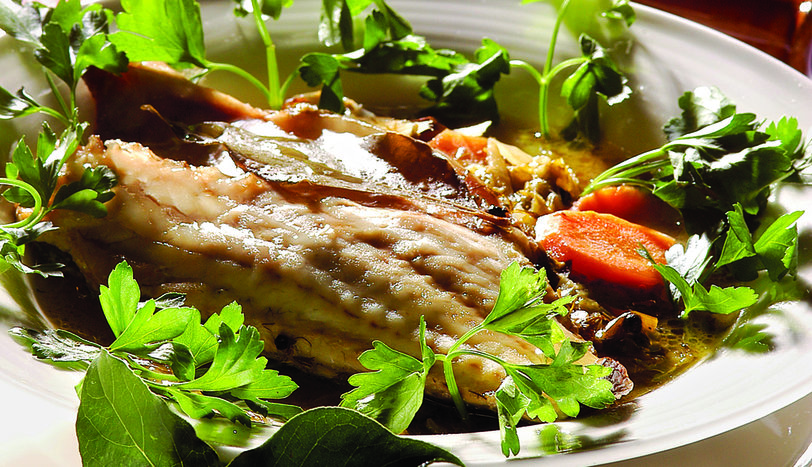 Patates, havuç ve kerevizi temizleyip ince halkalar şeklinde doğrayın. Maydanoz, dereotu ve salata yapraklarını incecik kıyın. Derin bir tencereye önce sebzeleri ve yeşillikleri yerleştirin. Mantarları ve limonu dilimleyip tencereye alın. Üzerine defne yaprağı, tane karabiber ve 1 çay bardağı zeytinyağını ekleyip kısık ateşte pişirin. Sebzeler hafifçe yumuşayana kadar pişirdikten sonra filetosunu çıkardığınız levreği sebzelerin üzerine yerleştirin. Limon ve biberleri dilimleyip balığın üzerine yerleştirin. Kısık ateşte balık yumuşayana kadar pişirin. Sebzelerle birlikte servis yapın.