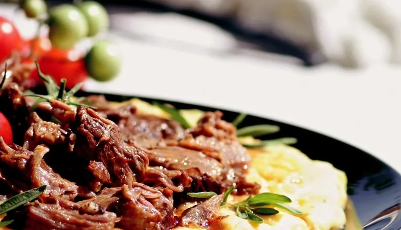 TEREYAĞINI bir tencereye alıp eritin ve eti 5 dakika çevirerek pişirin. Üzerine yemeklik doğranmış soğanları ekleyip 5 dakika kavurun. Daha sonra baharatları, dövülmüş sarmısak ve sirkeyi ilave edip bir-iki kez çevirin. Suyunu ekledikten sonra tencerenin kapağı kapalı olarak orta ateşte 2 saat pişmeye bırakın. Diğer taraftan sebzeli beşamel sosu hazırlamak için; sebzeleri ince kıyıp sıvıyağda kavurun. Üzerine 1 çay bardağı süt ekleyip 5 dakika pişirin. Ayrı bir yerde 2 çorba kaşığı tereyağını eritip 2 çorba kaşığı unu rengi dönene kadar kavurun. Kalan sütü azar azar üzerine ilave edin. Sürekli karıştırarak muhallebi kıvamına gelinceye kadar pişirin. Kavurduğunuz sebzeleri, tuz ve karabiberi üzerine ekleyip bir iki çevirdikten sonra ocaktan alın. Et pişince kemiklerini ayırın. Beşamel sosu servis tabağına alıp üzerine etleri yerleştirin. Kiraz domateslerle süsleyerek servis yapın.