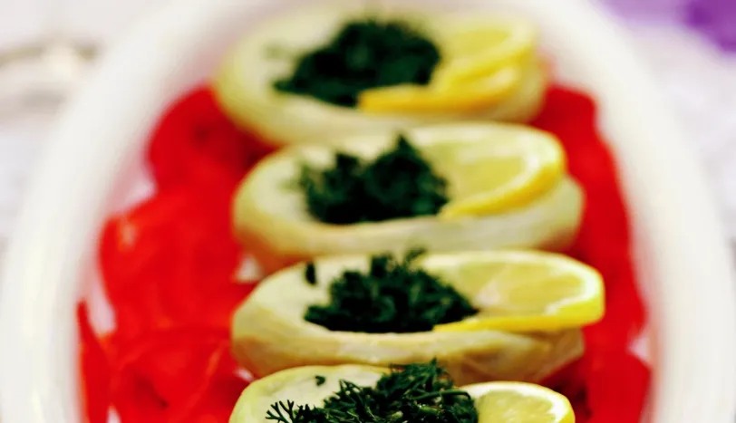 TEMİZLENMİŞ enginarları tencereye dizin. Bütün soğan ve sarmısağı ilave edin. Üzerine zeytinyağıgezdirin. Kesmeşeker,limon suyu, pirinç unuve tuz ekleyin. Soda ilaveedip, 10 dakika pişirin.Ocağın altını kapatıp,30 dakika tencerededinlendirin. Enginarlarıtencereden alıp servistabağına yerleştirin.Kırmızı biber, dereotuve limonla birlikte servis yapın.