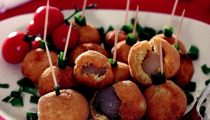 TEREYAĞINI eritip üzerine temizlenmiş soğanları ekleyin ve ağır ateşte 20 dakika sote edin. Diğer tarafta un, zeytinyağı, yoğurt, yumurta ve tuzu bir kapta karıştırıp iyice yoğurun. Gerekirse biraz su ilave edip kulak memesi kıvamında bir hamur hazırlayın. Hamurdan küçük bir ceviz kadar parçalar kopartarak avucunuzda yuvarlayın. Ortasını açıp 1 adet sote edilmiş arpacık soğanı yerleştirip kapatın. Galeta ununa buladıktan sonra kızartarak servis yapın.