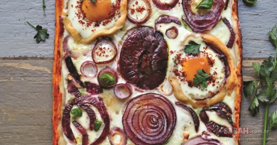 Her pizzanın üstündeki soğan halkalarının içine üçer adet yumurta kırın.