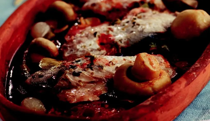 Çinekopları ayıklayıp, kılçıklarını çıkarın. Bir güveç kabının içine ortadan ikiye bölünmüş mantar, soğan ve sarımsağı yerleştirin. Üzerine balığı dizin. Derin bir kapta zeytinyağı ve soya sosunu karıştırıp, balığın üzerine gezdirin. Tane karabiber ve fesleğen serpin. Güvecin üzerini alüminyum folyo ile örtün ve önceden ısıtılmış 200 derece fırında balık soya sosunu çekene kadar pişirin. Sıcak olarak servis yapın.