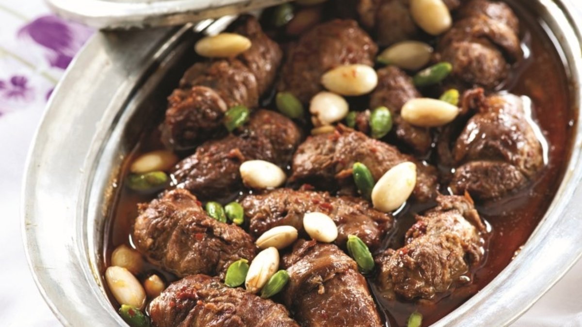 Bu karışımı 15 parçaya ayırın ve her birini dövülmüş kemiksiz pirzolalara sardıktan sonra jüt ipiyle bağlayın. Bağlama işi bittikten sonra zeytinyağında kızartın ve tencereye alın.