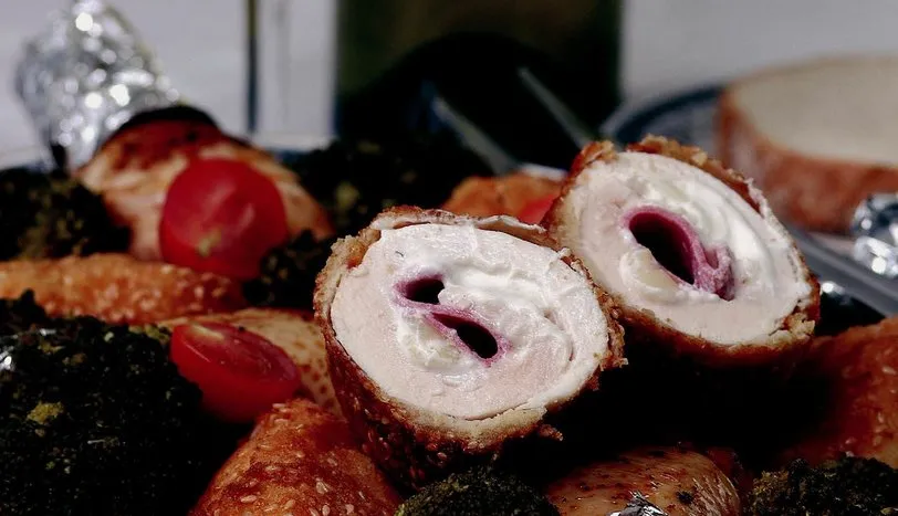GÖĞÜS etini enlemesine ikiye bölün. Döverek inceltin. Her bir dilimin üzerine labne peyniri sürün. Sırasıyla kaşar peyniri ve salam koyup, sigara böreği gibi sarıp, kürdanla tutturun. Bir kaba unu alın. Başka bir kaba çırpılmış yumurta, diğer bir kaba da susamla karıştırılmış galeta ununu koyun. Hazırladığınız göğüs bohçalarını sırasıyla una, yumurtaya ve susamlı galeta ununa bulayın. Orta ateşte, kızgın sıvıyağda kızartın. Tavukları yağdan alıp, kağıt havlu üzerinde yağını süzdürün.
