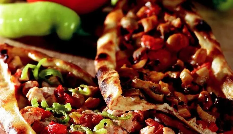 Mayayı suda eritin. Un ve tuzu bir kaseye alın. Mayalı suyu ilave edip kulak memesinden yumuşak bir hamur elde edene kadar yoğurun. Üzerini nemli bir bezle örtün ve 1 saat dinlendirin. Hamurdan 4 adet portakal büyüklüğünde parça koparın. Her bir parçayı unla birlikte açıp istediğiniz şekli verin. Mantarlı harç için küp doğranmış mantarı sıvıyağda kavurun. Kabukları doğranmış ve küp doğranmış domates, tuz, karabiber ve pulbiberi ilave edip 1-2 dakika daha kavurduktan sonra ılınmaya bırakın. Tavuklu harç için, kuşbaşı doğranmış tavuk göğsünü sıvıyağda kavurun. Kabukları soyulmuş ve küp doğranmış domates, sivri biber, tuz, karabiber, pulbiber ilave edip 1-2 dakika daha kavurduktan sonra ılınmaya bırakın. Hamurların yarısına mantarlı yarısına tavuklu harçtan pay edin. Önceden ısıtılmış 200 derece fırında altları ve üstleri kızarana kadar pişirin. Fırından çıkardıktan sonra üzerlerine tereyağı sürüp, sıcak olarak servis yapın.