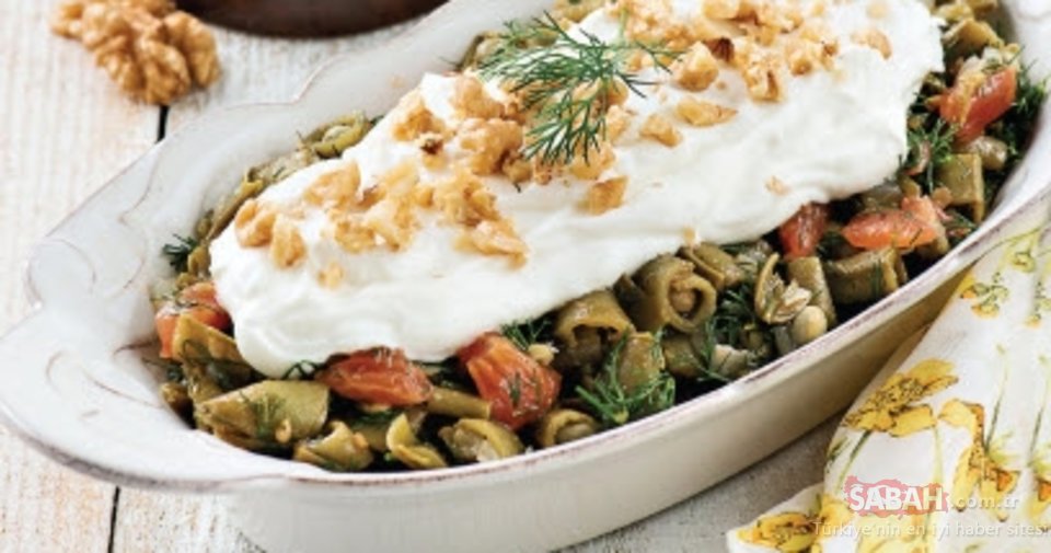 Baklayı katıp orta ateşte 10 dakika kavurun. Ocaktan alıp kıyılmış dereotu ilave edin. Tuzunu ayarlayıp servis tabağına alın. Üzerine çırpılmış yoğurt gezdirip, ceviz serperek ılık ya da soğuk servis yapın.