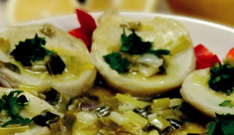 ENGİNARLARI temizleyip, limonlu suda haşlayın (dilerseniz dörde bölebilirsiniz). Diğer tarafta tereyağını bir tencere içerisinde eritin. Erimiş tereyağına enginarları ve taze soğanı ekleyin. Tuz ve karabiber ilave edip, dikkatlice karıştırın. Enginarları bir fırın kabına alın. 180 derece fırında 20 dakika pişirin. İnce kıyılmış maydanoz serperek sıcak servis yapın.