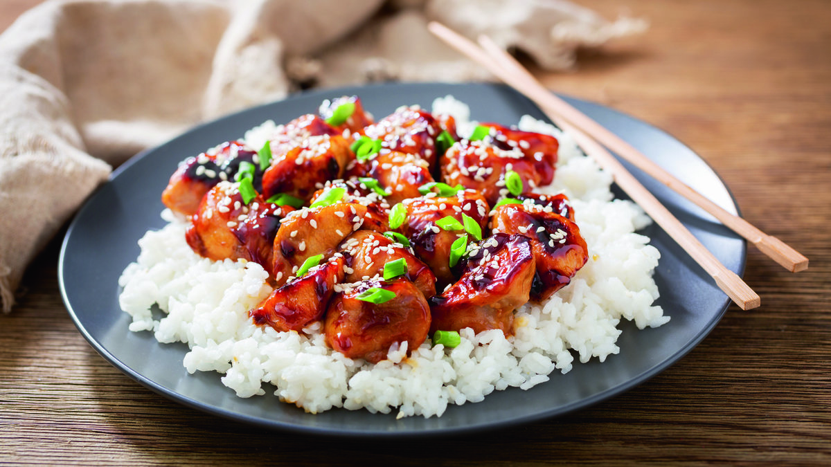 Tatlı ve tuzlu aromasıyla teriyaki soslu tavuk, yumuşacık pirinç pilavıyla buluşarak pratik ve lezzetli bir ana yemek alternatifi sunuyor.