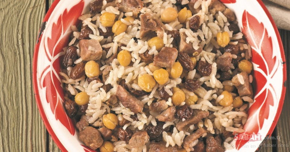 Pirinci katıp bir-iki çevirin. Üzüm ve nohut ilave edip, tuz ve karabiberini ayarlayın. Su ekleyip kaynayana dek harlı, kaynamaya başlayınca kısık ateşte suyunu çekene kadar pişirin. Ocaktan alıp, harmanlayın ve üzerini önce mutfak havlusu sonra tencerenin kapağı ile kapatıp, 10 dakika dinlendirdikten sonra servis yapın
