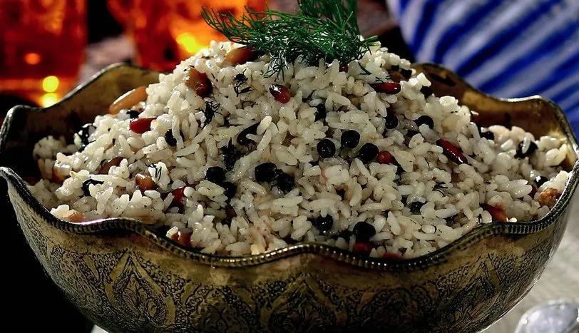Dolmalık fıstıkları bir tavaya alıp kısık ateşte kavurun. Üzerine 1 tatlı kaşığı tereyağı ve kıyılmış dereotu ekleyip bir-iki çevirdikten sonra kenara alın. Kuş üzümlerini sıcak suya koyup 10 dakika bekletin. Kalan tereyağı ve zeytinyağını kızdırın. Üzerine pirinci, soğanları ve tuzu ekleyip 5 dakika karıştırarak kavurun. Kuş üzümü ve kuru üzümleri ilave edin. 10 dakika ağır ateşte kavurduktan sonra 3 su bardağı sıcak su, yenibahar, tarçın, karanfil, toz şeker ve karabiber ekleyin. Tencerenin kapağını kapatıp 5 dakika harlı, 15 dakikada kısık ateşte pişirin. Altını kapatıp kenara aldığınız fıstıklı karışımı pilavla karıştırın. Kağıt havluyu tencerenin üzerine kapatıp, 10 dakika demlendirdikten sonra servis yapın.