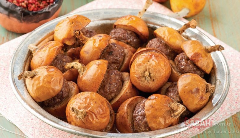 İki parça yenidünya arasına bir adet köfte yerleştirip fırın tepsisine yerleştirin. Kalan malzemeyi de aynı şekilde hazırlayıp yan yana dizin. Üzerine bir-iki adet çekirdek atıp, yağlı kağıtla kaplayın.