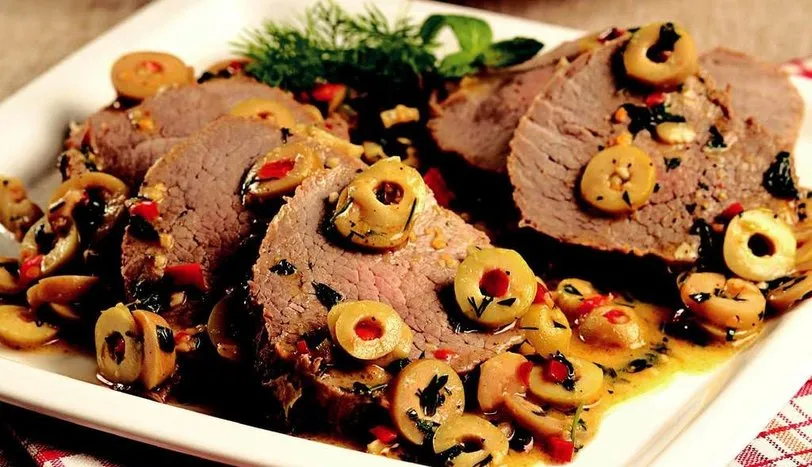 tencereden çıkarın, kıyılmış zeytinleri ilave edin. 10-15 dakika pişirin. Etin üzerine gezdirip servis yapın.