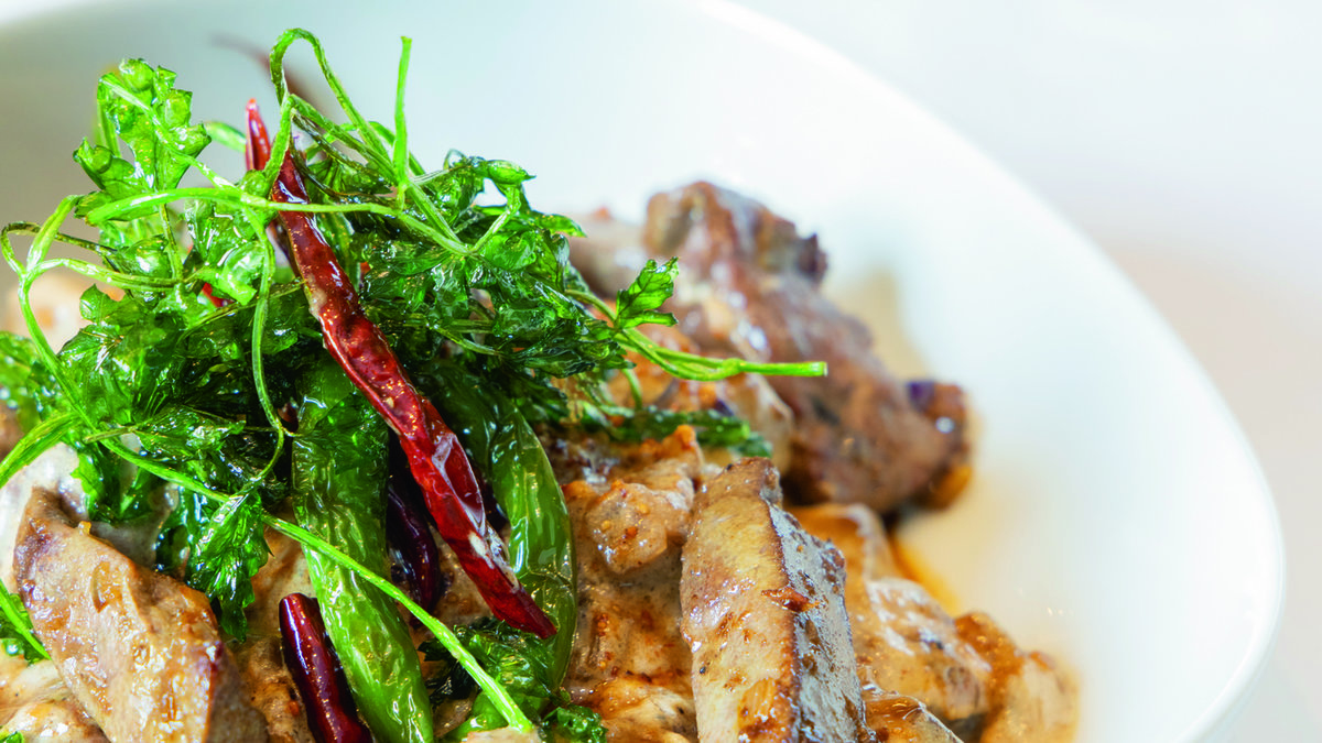 Geniş bir tavaya zeytinyağını alın. Kıyılmış soğanı ilave ederek 2-3 dakika kavurun. Ezilmiş sarımsağı ve unlanmış ciğerleri de tavaya ekleyin. Yüksek ateşte 2-3 dakika karıştırarak pişirin.