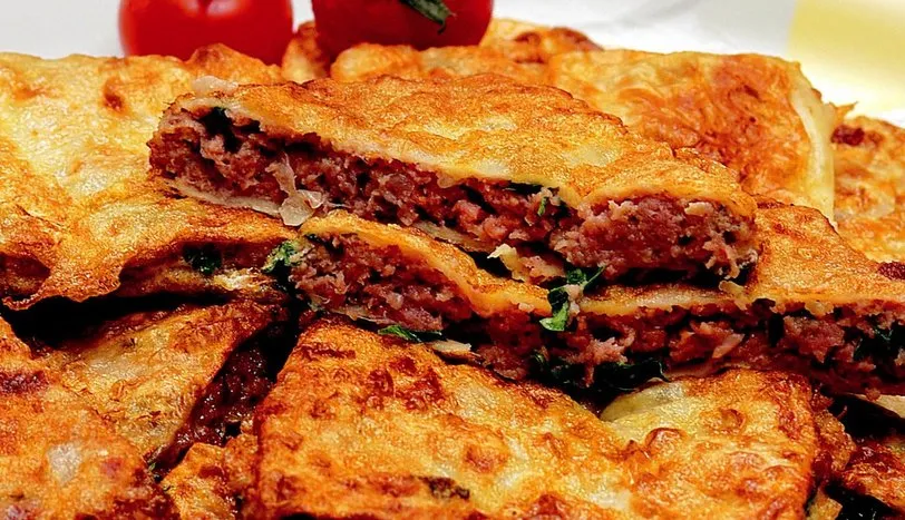 Köfte içi hazırlamak için kıyma, ekmek içi, 1 adet yumurta, tuz, kimyon, karabiber ve ince kıyılmış maydanozu karıştırıp, iyice yoğurun. Yufkayı düz bir zemine serin. Kalan yumurtayı çırparak yufkanın üzerine sürün. Yufkayı yarım daire olacak şekilde kapatın. Köfte harcını katlanmış yufkanın yarısını kaplayacak şekilde yayın. Boş olan taraf ile köftenin üzerini kapatın. Kare şeklinde dilimleyin. Kızartmak için yumurtaları çırpın. Yufkalı köfteleri yumurtaya bulayın. Kızgın yağda kızartıp servis yapın.