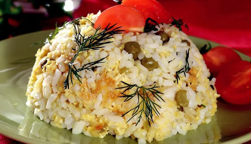 Pirinci yıkayıp süzün ve kenara alın. Tereyağını eritip pirincin rengi beyazlaşana kadar kavurun. Üzerini geçecek kadar sıcak su ekleyin. Tuzunu ilave edip pişmeye bırakın. diğer taraftan yumurtaları bir kaba kırıp iyice çırpın. Pilavın suyunu çekmesine yakın bezelyeleri ilave edip karıştırın. Çırpılmış yumurtayı üzerinde gezdirin. Kapağını kapatarak ağır ateşte pişmeye bırakın. Yumurta pişince altını kapatıp 10 dakika demlendirin. Servis tabaklarına alıp üzerine kıyılmış dereotu serperek servis yapın.