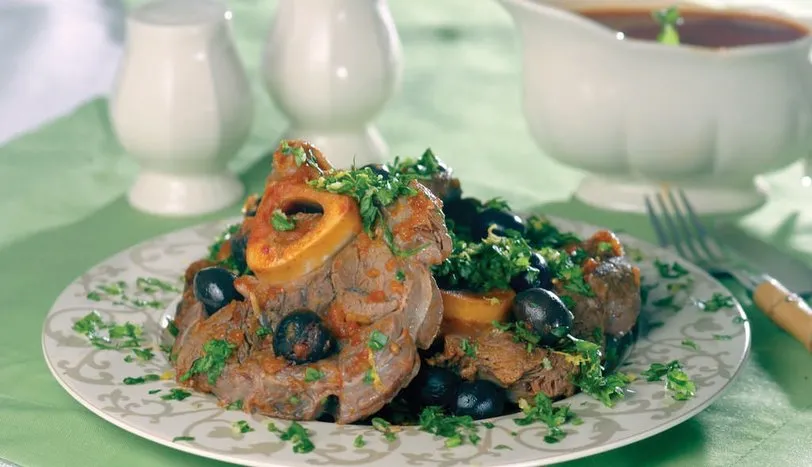 Kuzu inciği sudan geçirip, tuz ve karabiber serpin. Bir tencereyi ocağa oturtup 4-5 saniye ısıttıktan sonra, etleri içine koyun. Çevirerek 5 dakika pişirin. Margarin ekleyip, 5 dakika daha pişirin. Soğanı rendeleyin ve havucu birkaç parçaya bölerek ete ekleyin. Dövülmüş sarmısak ve suyu da ekleyin. 45 dakika tencerenin kapağı kapalı olarak kısık ateşte pişmeye bırakın. Ocaktan indirmeye 10 dakika kala, zeytinleri ekleyin. Maydanozla süsleyerek servis yapın.