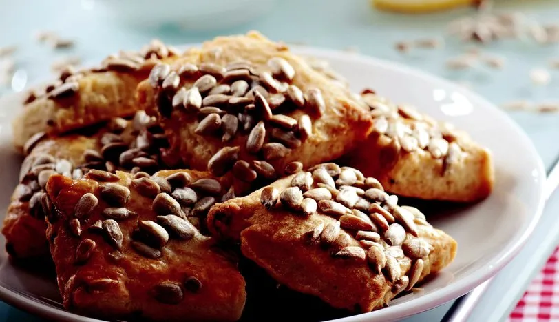 Yumurtanın akını ve sarısını ayırın. Tereyağı ve sıvı yağı derin bir kaba alıp, üzerine 2 su bardağı un ekleyip, yoğurun. Anason, tuz, yumurta sarısı ve kabartma tozunu katın. Kulak memesi yumuşaklığında bir hamur elde edene kadar un ilave edip, yoğurun. Hafif unlanmış tezgahta hamuru merdane yardımıyla 1 cm kalınlığında açın. Çırpılmış yumurta akını üzerine sürün ve ay çekirdeği serpin. Elinizle hafifçe bastırarak çekirdeği hamura yedirin. Hamuru dilediğiniz şekilde kesip, yağlanmış fırın tepsisine dizin. Önceden ısıtılmış 200 derece fırında 15-20 dakika pişirin. Ilındıktan sonra servis yapın.