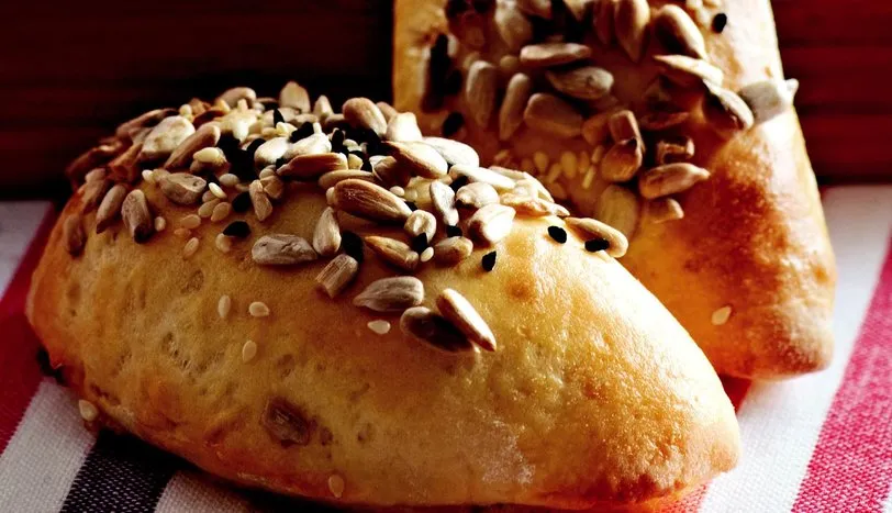 Hamur için yaş mayayı suya koyup, 15 dakika bekletin. Unu yoğurma kabına alın ve ortasını havuz şeklinde açın. Mayalı su, süt, yumurta, tereyağı, sıvı yağ, yoğurt, toz şeker ve tuz koyup, tüm malzemeyi iyice yoğurun. Üzerini nemli bir bezle örtün ve 40 dakika dinlendirin. Oklava yardımıyla hamuru yarım cm kalınlığında açın. Genişçe bir su bardağının ağız kısmıyla yuvarlaklar kesip, çıkarın. Kalan fazla hamuru toparlayıp, tekrar açın ve yine yuvarlaklar çıkarın. İçi için ay çekirdeği, rendelenmiş beyaz peynir, siyah zeytin, kaşar peyniri, kıyılmış kırmızı biber, maydanoz, dereotu ve pul biberi derin bir kabın içinde karıştırın. Kestiğiniz hamur parçalarının bir kenarına hazırladığınız harçtan 1 tatlı kaşığı koyun ve diğer ucu üzerine kapatıp, yarım ay şekli verin. Hamur ve iç harç bitene kadar işleme devam edin. Yağlanmış fırın tepsisine yerleştirin ve üzerine yumurta sarısı sürün. Ay çekirdeği, çörek otu ve susam serpin. Önceden ısıtılmış 200 derece fırında 30-35 dakika pişirin.AŞÇININ NOTUDilerseniz poğaçaları, oklavayla açmak yerine, hamurdan ceviz büyüklüğünde parçalar koparıp, avucunuzun içinde genişleterek de hazırlayabilirsiniz.