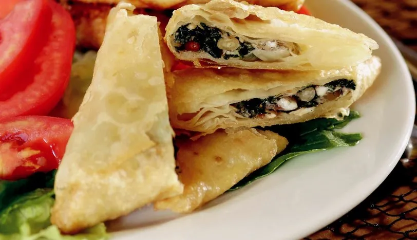 Hamsiyi ayıklayıp kılçıklarını çıkarın. Yıkayıp suyunu süzdükten sonra incecik kıyın. Yarım ay şeklinde doğranmış soğan ve dolmalık fıstığı sıvı yağda kavurun. Hamsi, ince kıyılmış maydanoz, tuz, kimyon ve karabiberi ilave edip 2-3 dakika daha kavurduktan sonra ılınması için bir kenara alın. Yufkaları uzun şeritler halinde kesin. Bir ucuna 1 çorba kaşığı hamsili iç harçtan koyun ve muska şeklinde sarın. Yufkanın uç kısımlarını yumurta akına bulayıp
